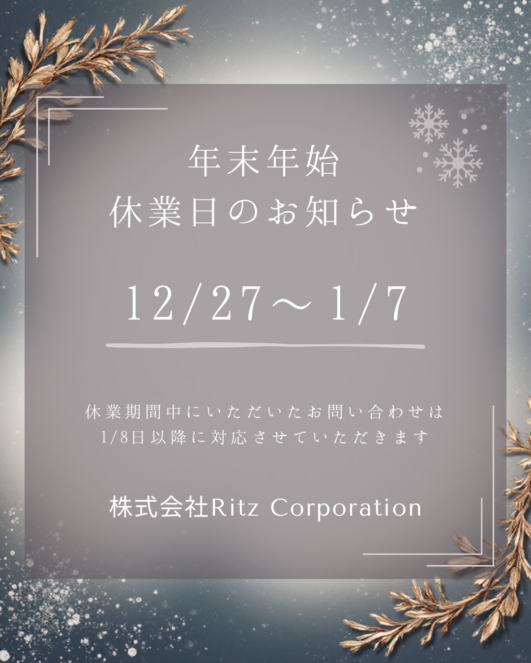 25.12.14 代表川村です。 今年も一年、大変お世話になりました。 関わって下さった全ての皆様に御礼申し上げます。 さて、誠に勝手ながら弊社は12/27(土)~1/7(水)まで お休みとさせていただきます。 期間中いただきましたお問合せにつきましては、 1/8日(木)以降、順次対応させていただきます。 ご迷惑、ご不便をおかけいたしますが何卒よろしくお願いします。 代表 川村 前の記事へ 次の記事へ TEL075-392-5555